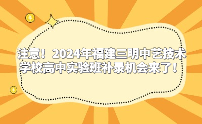 注意!2024年福建三明中藝技術(shù)學(xué)校高中實(shí)驗(yàn)班補(bǔ)錄機(jī)會(huì)來(lái)了!