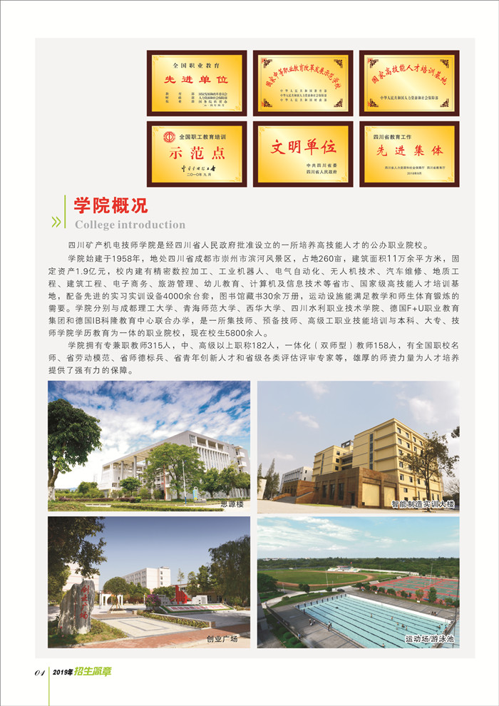 四川礦產(chǎn)機電技師學(xué)院招生簡章,該學(xué)院為一所經(jīng)人民政府批準(zhǔn)成立國家重點公辦的全日制技師學(xué)院,隸屬于四川省地礦局。位于崇
