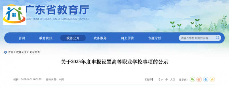 關(guān)于2023年度申報(bào)設(shè)置高等職業(yè)學(xué)校事項(xiàng)的公示