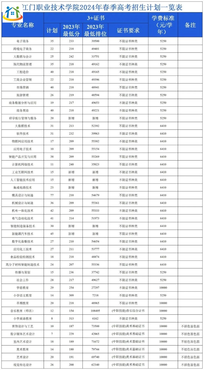 2024年江門職業(yè)技術(shù)學(xué)院3+證書招生計劃