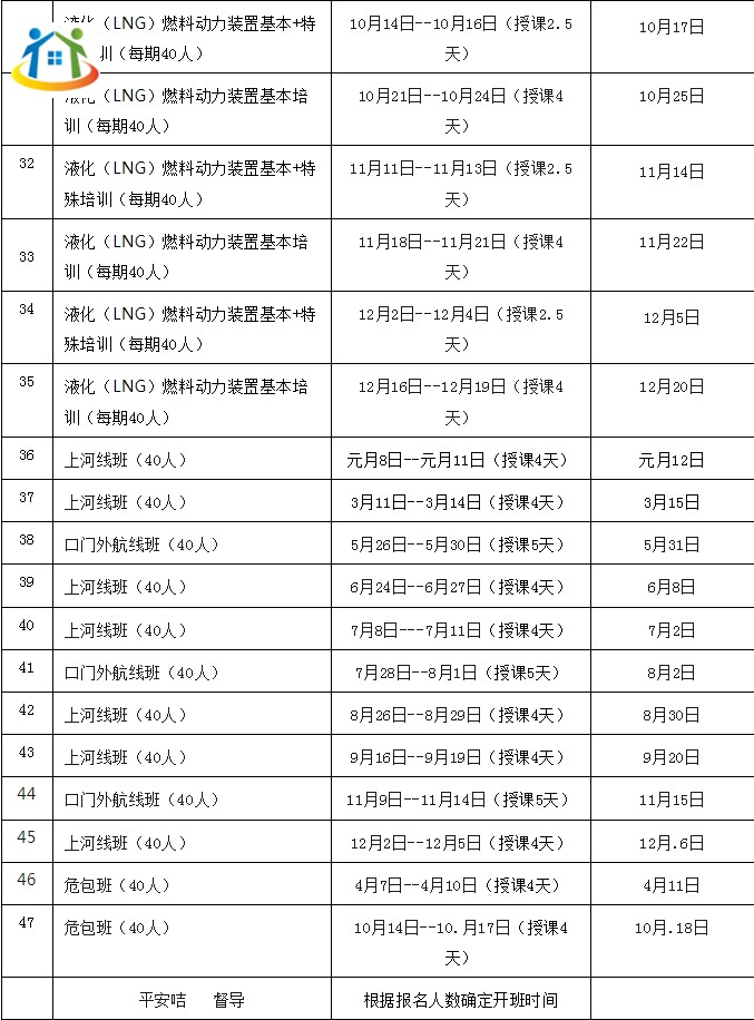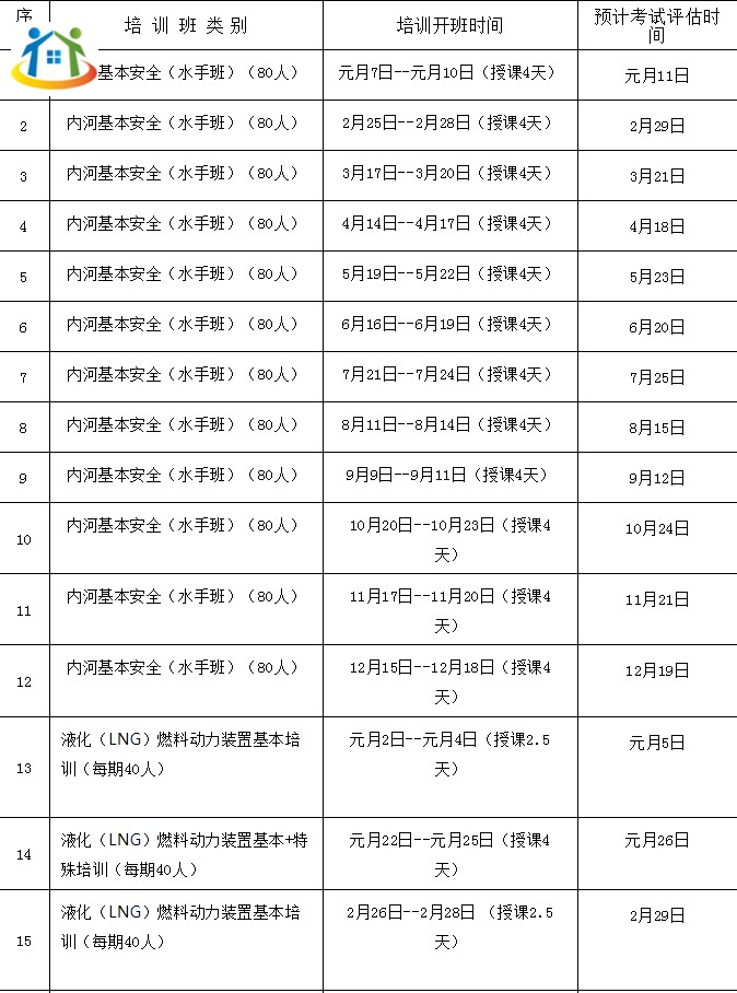2024年內(nèi)河船舶船員培訓(xùn)開班計(jì)劃(駕駛部分)