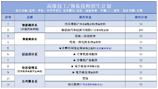 2.高職學段招生對象為對應中職學校招生專業(yè)”三二分段”班具有正式中職學籍且符合高職階段招生所在年度廣東省普通高考報名條件的學生。