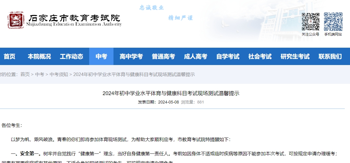 速看!石家莊教育考試院關(guān)于2024年初中學(xué)業(yè)水平體育與健康科目考試現(xiàn)場(chǎng)測(cè)試溫馨提示!