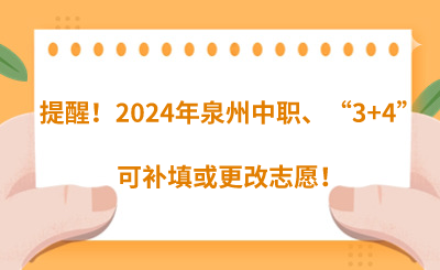 提醒!2024年泉州中職、“3+4”可補(bǔ)填或更改志愿!僅這兩天→