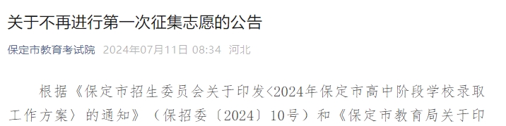 速看!保定中考不再進(jìn)行第一次征集志愿(附第一批次錄取查詢時(shí)間)