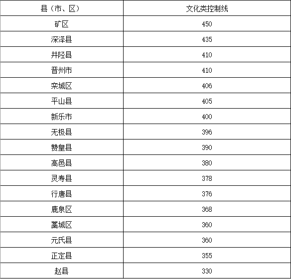 2024石家莊市17個(gè)縣普通高中學(xué)校招生文化類(lèi)控制分?jǐn)?shù)線