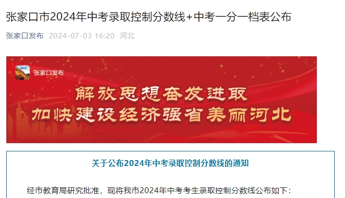 關(guān)于公布張家口2024年中考錄取控制分?jǐn)?shù)線的通知!