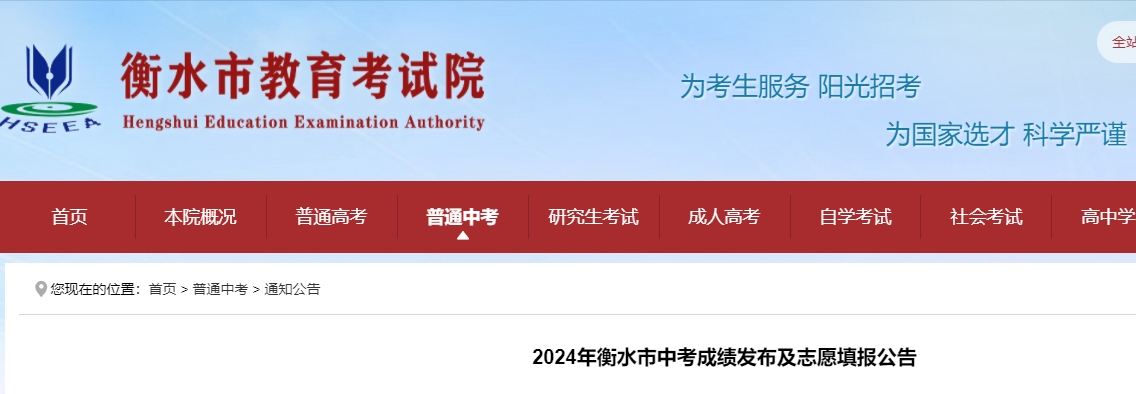 根據(jù)我市中考工作安排,現(xiàn)將2024年我市中考成績(jī)發(fā)布及志愿填報(bào)等事項(xiàng)公告如下:一、成績(jī)發(fā)布(一)發(fā)布渠道登錄衡水市教育考試院官網(wǎng)(http: w