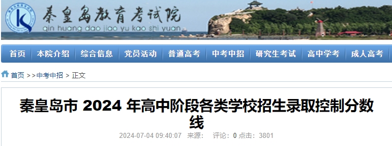 2024秦皇島市高中階段各類(lèi)學(xué)校招生錄取控制分?jǐn)?shù)線