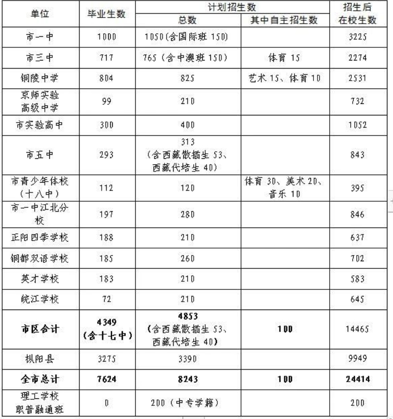 關(guān)于2024年銅陵市普通高中招生計(jì)劃表