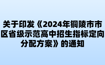 關(guān)于印發(fā)《2024年銅陵市市區(qū)省級(jí)示范高中招生指標(biāo)定向分配方案》的通知