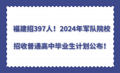 【導(dǎo)讀】最新!2024年軍隊院校招收普通高中畢業(yè)生計劃公布,其中面向福建招397人,一起來看具體招生計劃!