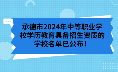 速看!承德市2024年中等職業(yè)學(xué)校學(xué)歷教育具備招生資質(zhì)的學(xué)校名單已公布!