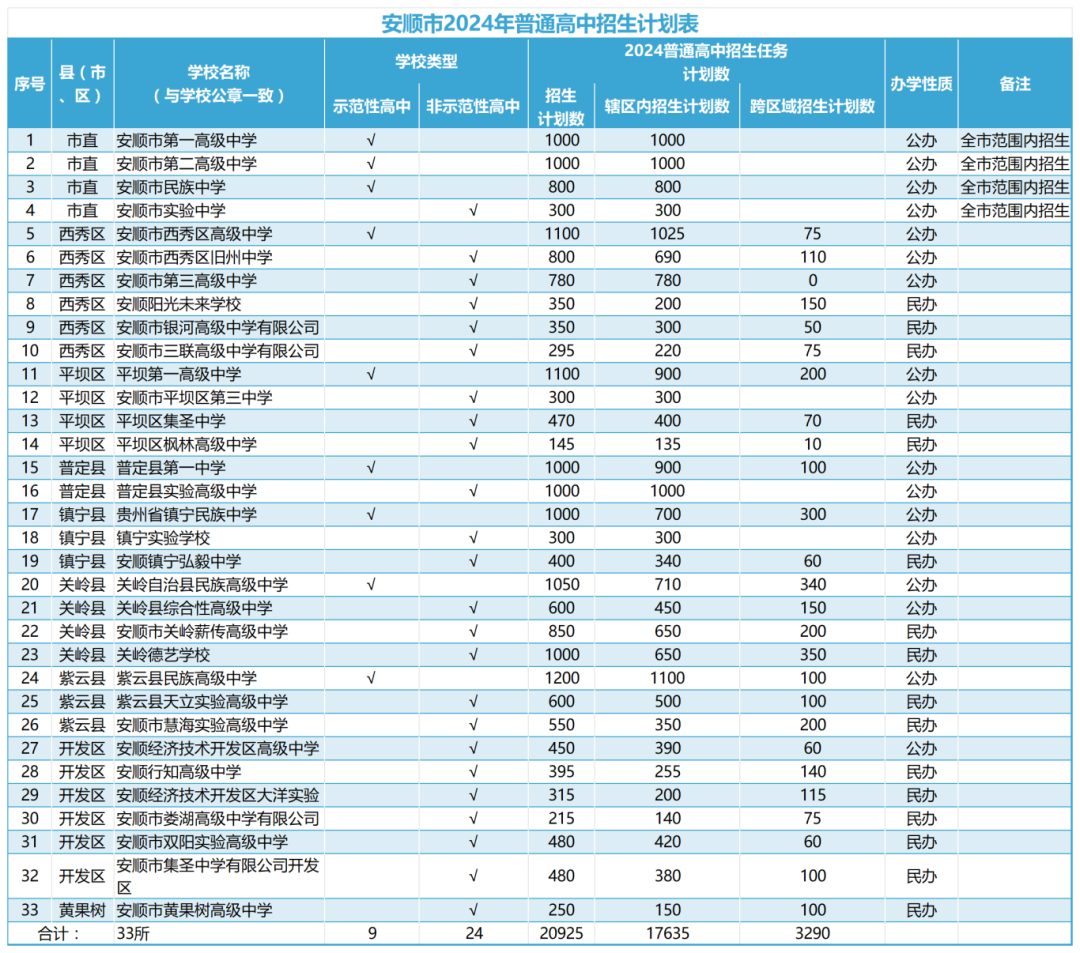 @初三畢業(yè)生:2024安順普通高中招生計劃一覽表