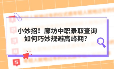 小妙招!廊坊中職錄取查詢?nèi)绾吻擅钜?guī)避高峰期?