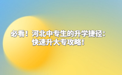必看!河北中專生的升學(xué)捷徑:快速升大專攻略!