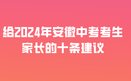 很多朋友想了解更多的學(xué)校,安徽初中升學(xué)網(wǎng)小編整理了速看!給2024年安徽中考考生家長(zhǎng)的十條建議,希望對(duì)大家有所幫助。