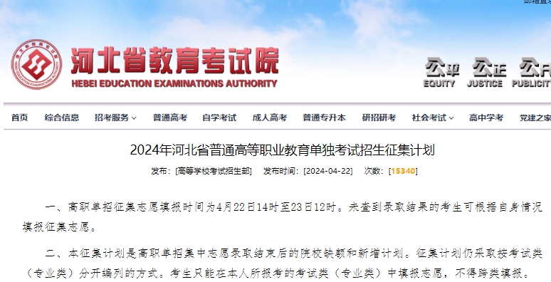 2024年河北高職單招征集志愿填報時間:4月22日起!