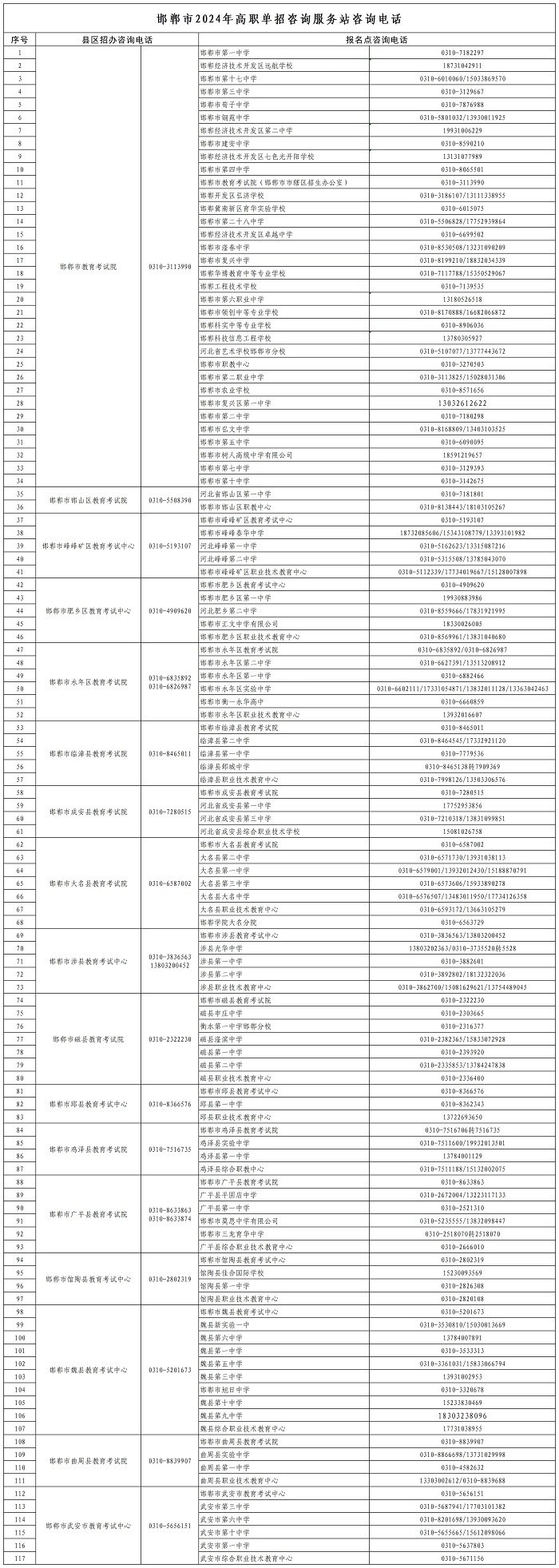 邯鄲市2024年高職單招咨詢服務站電話公布!