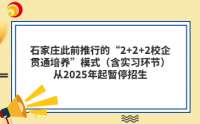 石家莊此前推行的“2+2+2校企貫通培養(yǎng)”模式(含實(shí)習(xí)環(huán)節(jié))從2025年起暫停招生