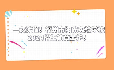 一文讀懂!福州市陽光實驗學(xué)校2024招生簡章出爐!