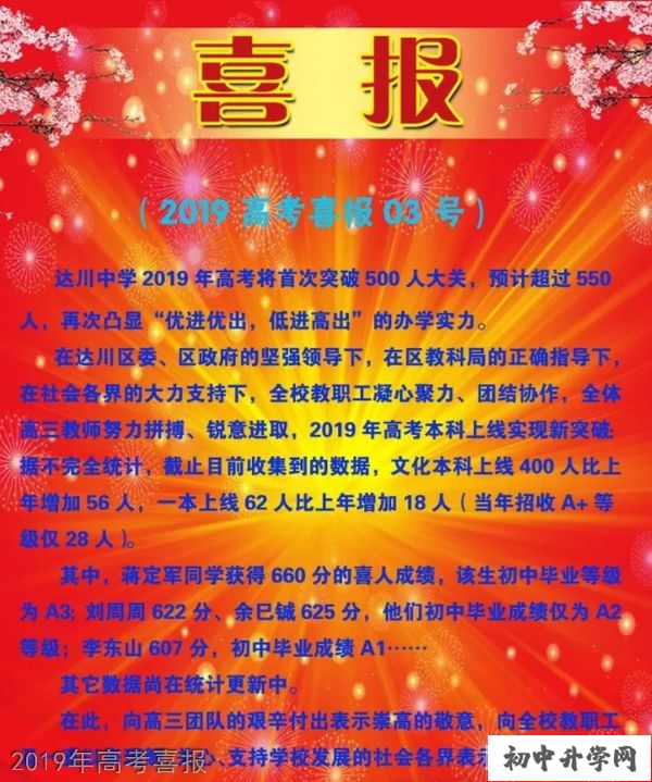 四川省達(dá)川中學(xué)喜報(bào)