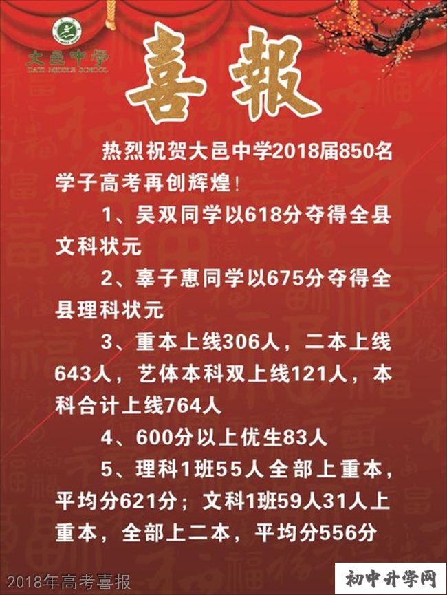 熱烈祝賀:大邑縣上600分以上19人,有18人在大邑中學(xué),理科前18名,文科前10名均在大邑中學(xué)。