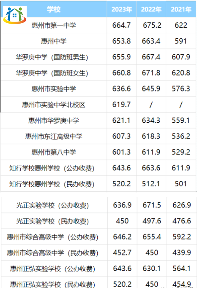 近三年廣東省惠州普通高中分數(shù)線多少?(參照23年)