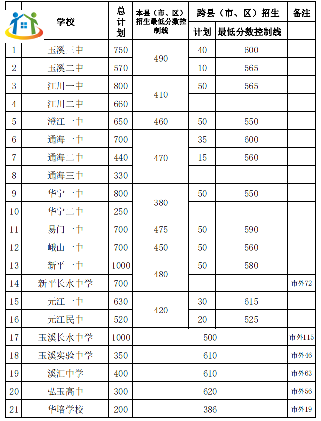 2023年玉溪市普通高中招生錄取分?jǐn)?shù)線