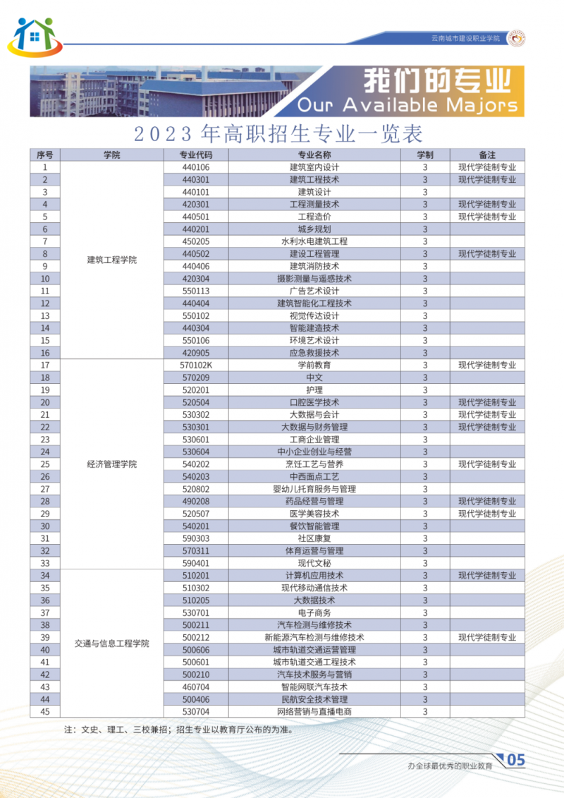本文標(biāo)題:2023年云南城市建設(shè)職業(yè)學(xué)院招生專業(yè)計劃