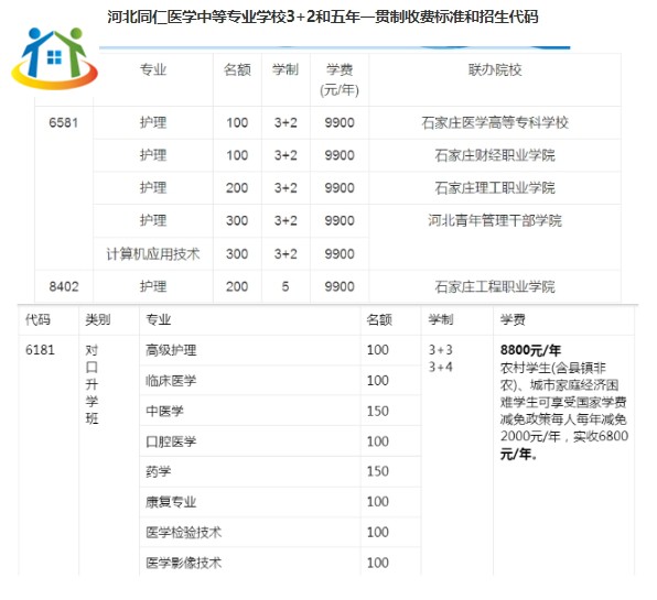 2023年河北同仁醫(yī)學(xué)中等專業(yè)學(xué)校3+2和五年一貫制招生計(jì)劃