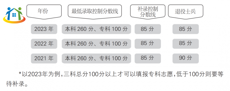 近3年3+證書(shū)錄取最低控制分?jǐn)?shù)線(省控線)