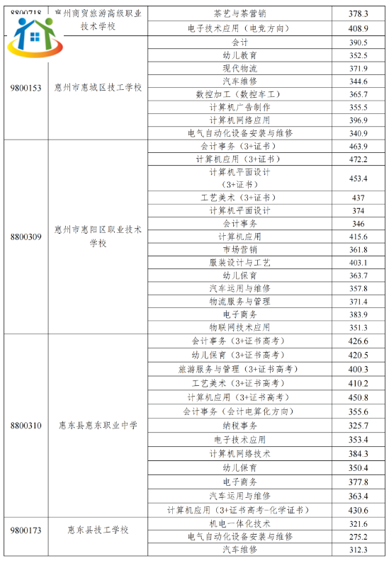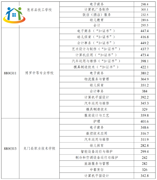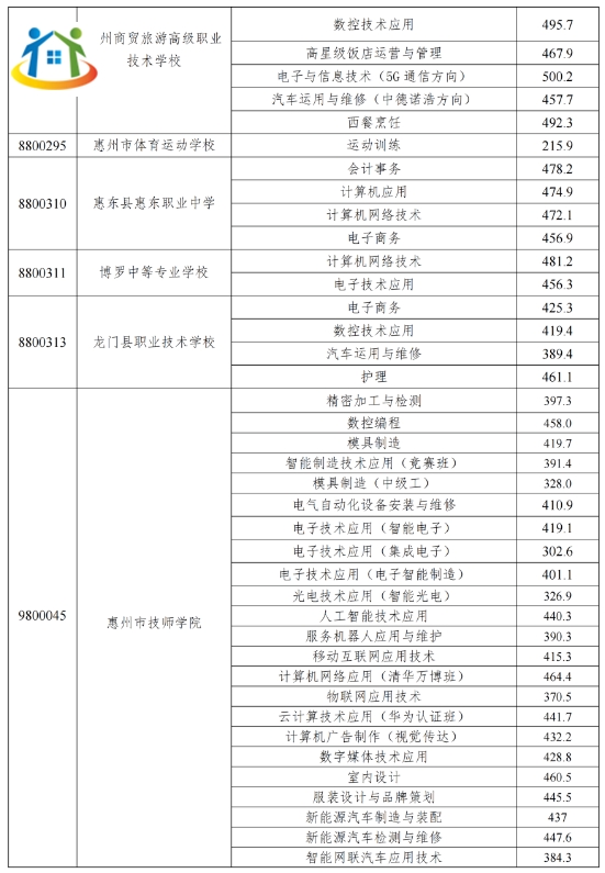 廣東惠州中職院校錄取分數(shù)線多少?