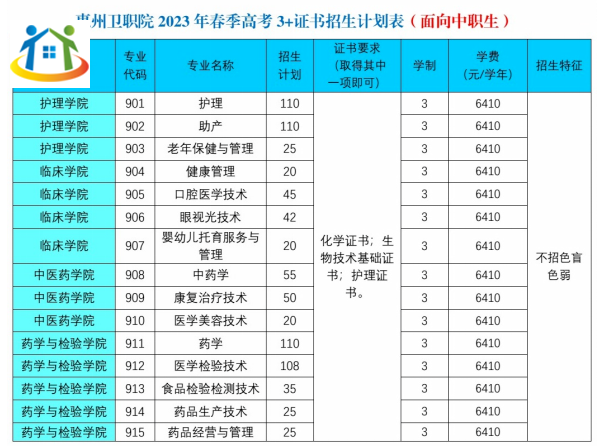23年惠州衛(wèi)生職業(yè)技術(shù)學(xué)院3+證書招生計(jì)劃