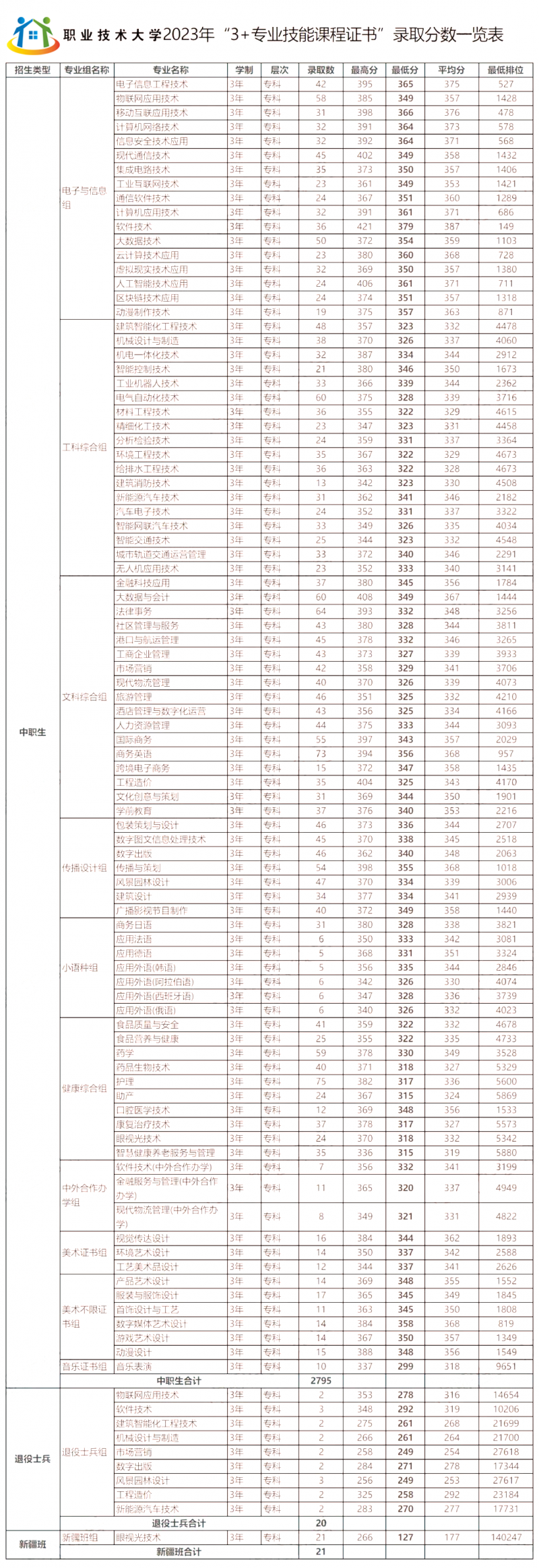 2023年深圳職業(yè)技術(shù)大學3+證書錄取分數(shù)線