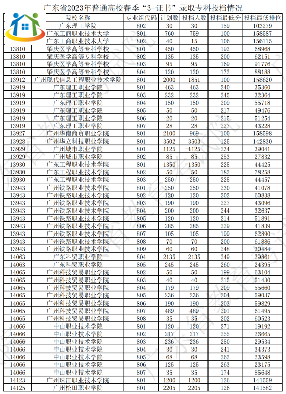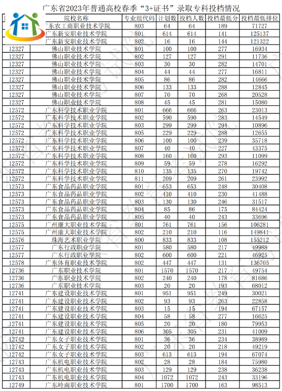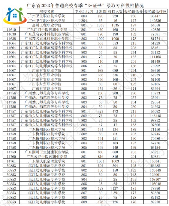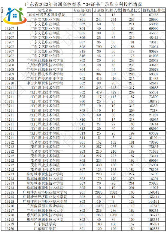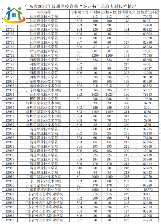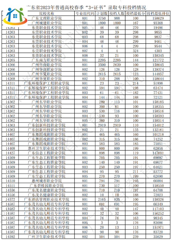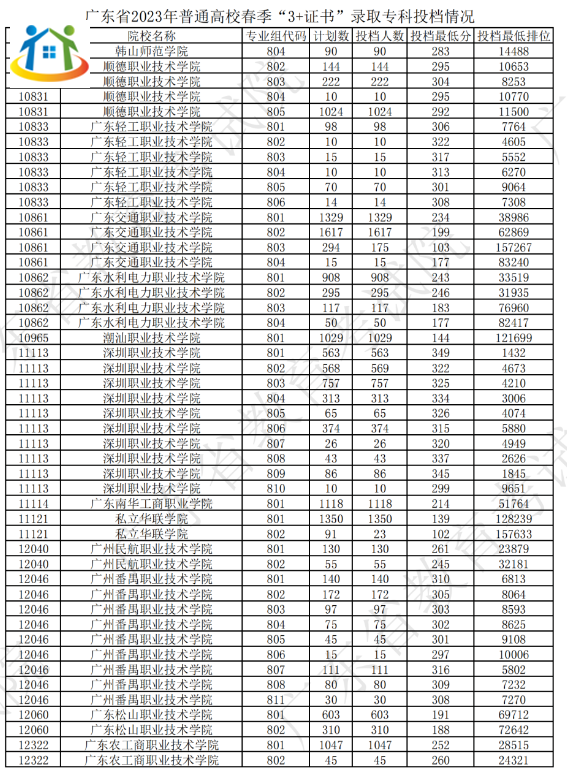 2024年廣東3+證書(shū)院校專業(yè)投檔情況