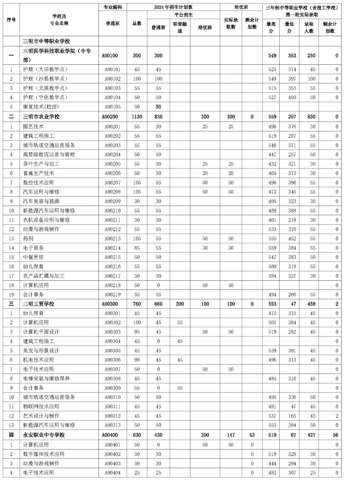三明市2024年三年制中職(含技工學(xué)校)第一輪投檔錄取公布